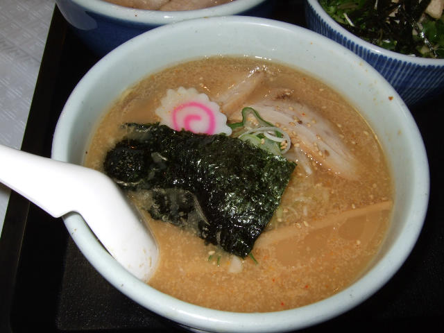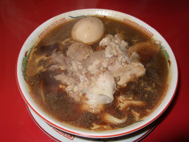 スープはなんとも形容しがたいんですが、自分的にチャーシューかなんかの煮汁の様な感じで、これに中太ストレート麺がなにげにマッチしていました。